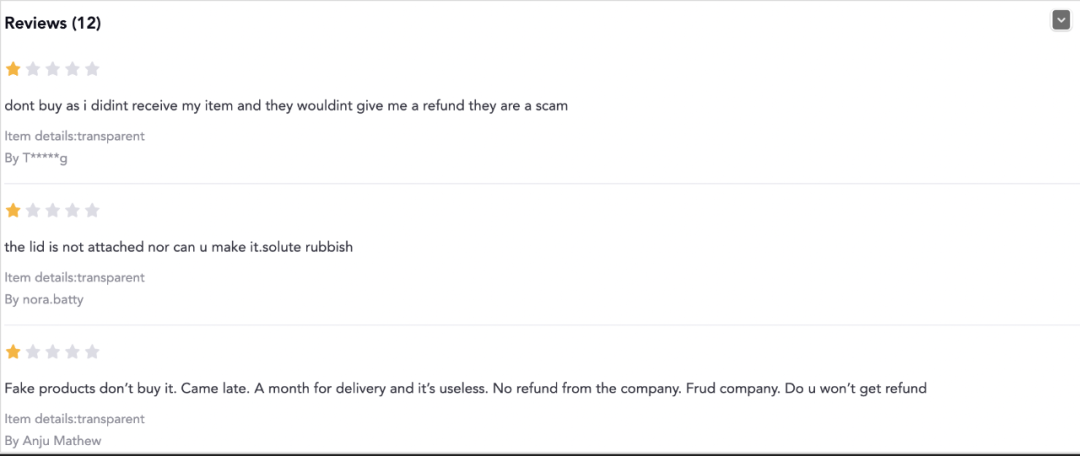 在Fanno平臺(tái),一只形狀酷似Airpods、價(jià)格只要1.99英鎊的“藍(lán)牙耳機(jī)”下邊,有不少用戶給出了1顆星:“這個(gè)藍(lán)牙耳機(jī)連不上手機(jī),我已經(jīng)把它扔進(jìn)了垃圾桶”,“這跟我想的一點(diǎn)都不一樣”,“一個(gè)月才收到,但根本用不了,賣家根本不回復(fù)”……
