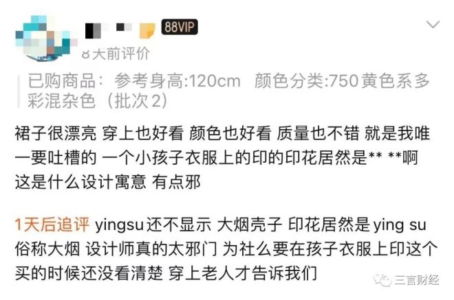 同樣在江南布衣的電商平臺店鋪中,也有買家認(rèn)為裙子上的圖案陰森。