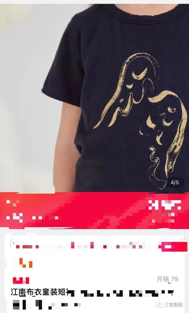 在江南布衣的電商店鋪中,三言財經(jīng)發(fā)現(xiàn)一款長裙,上面的圖案引起了我們的關(guān)注。