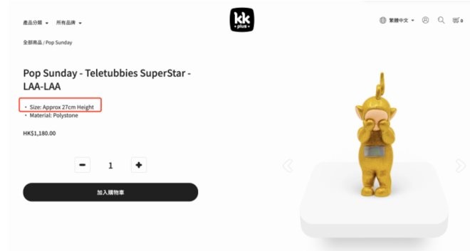 KK plus官網(wǎng)顯示,被碰碎的天線寶寶,是在售的一款由 Pop Sunday出品的天線寶寶明星系列產(chǎn)品的放大版展品。