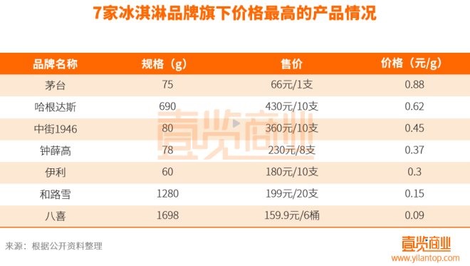 而鐘薛高、伊利、和路雪等品牌產(chǎn)品則是茅臺價格的幾倍之差。