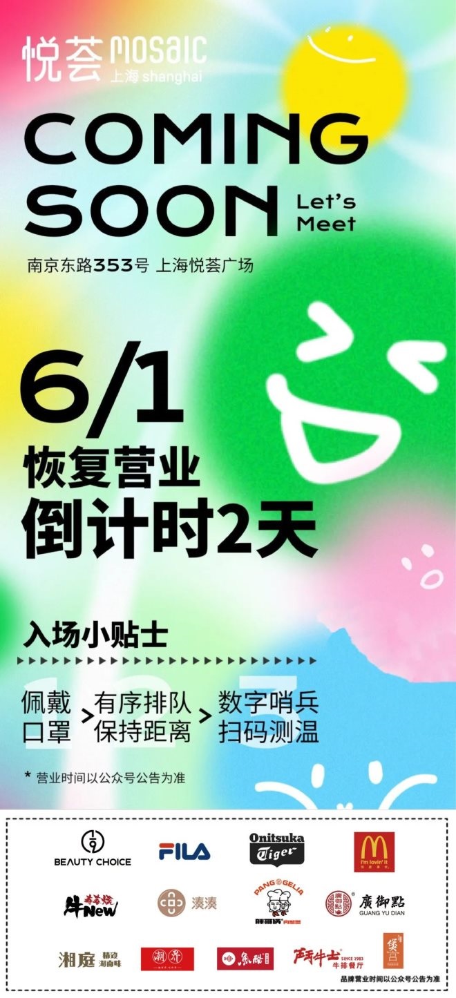6月1日,悅薈廣場將正式恢復(fù)線下營業(yè),營業(yè)時間10:00-22:00。餐飲、零售、樂活服務(wù)類業(yè)態(tài)等逐步有序開業(yè)。