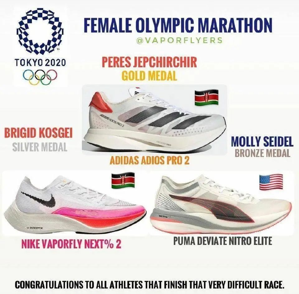 ▲東京奧運會女子馬拉松前三名上腳鞋款,圖片來源:Instagram