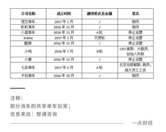 當(dāng)市場沉淀,資本冷靜,第二第三梯隊玩家難以對摩拜、ofo等排名靠前的企業(yè)造成威脅,很難再通過融資吸引投資人注資,再加上丟失損毀嚴(yán)重造成運營和投放成本過高,技術(shù)創(chuàng)新不足,盈利模式不明確,所以當(dāng)這些創(chuàng)業(yè)公司燒完錢后,黯然離場成了注定的結(jié)局。