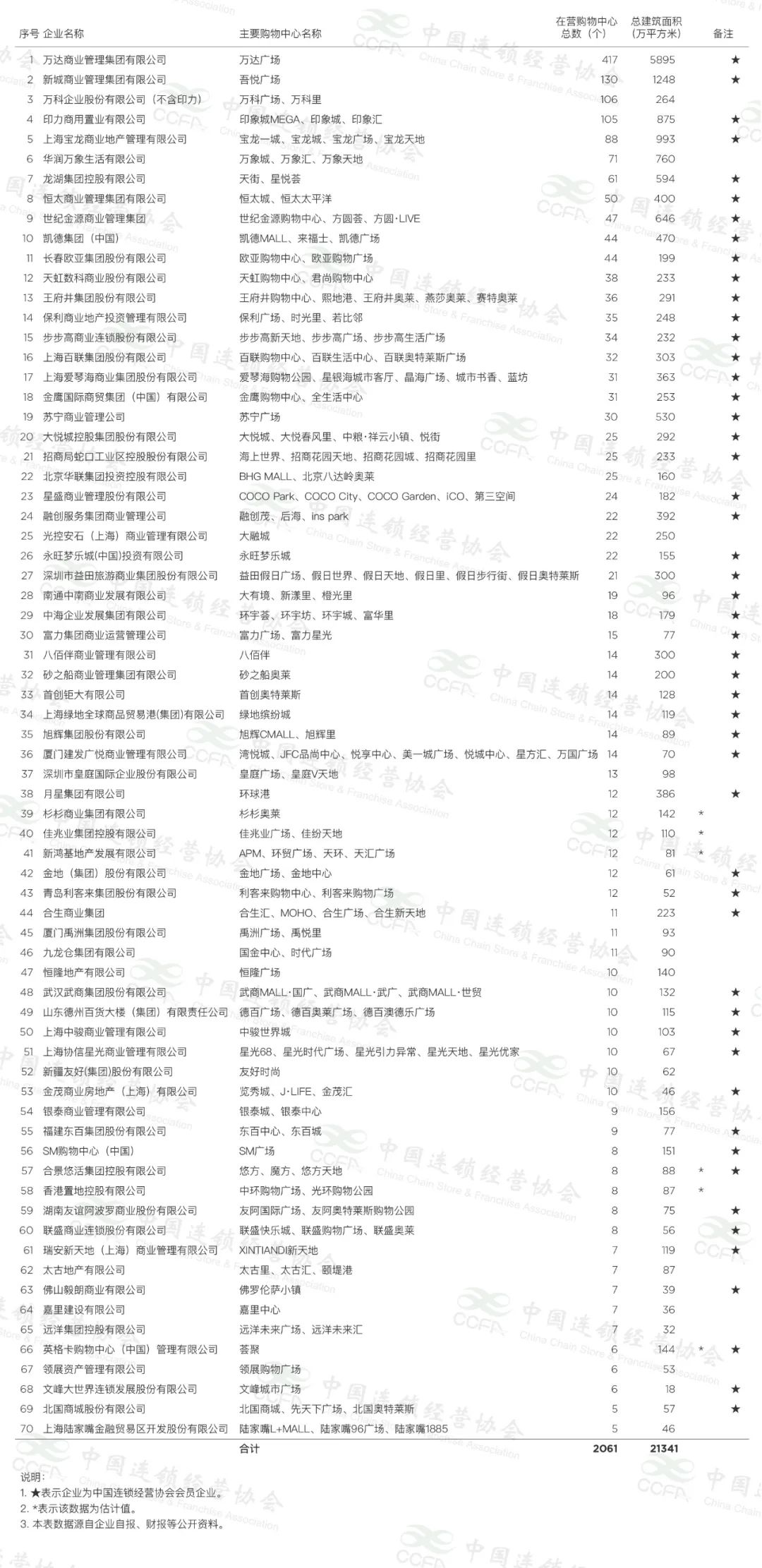 2021年中國購物中心企業(yè)TOP70揭曉