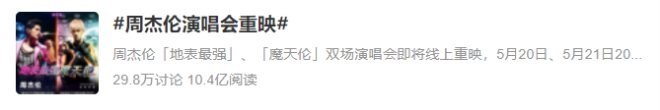 微博平臺上,“周杰倫演唱會重映”話題累計閱讀量超10億 圖源:微博截圖