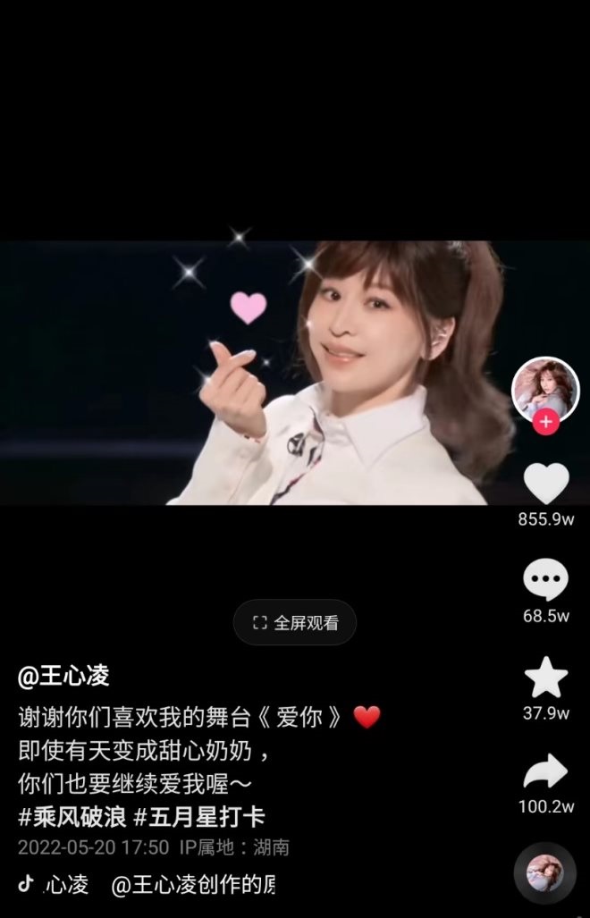 圖源:王心凌抖音賬號截圖