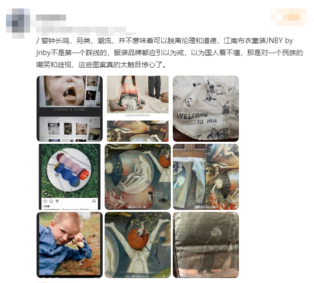 去年9月23日,江南布衣通過旗下品牌“jnby_by_JNBY”微博回應(yīng),表示對消費(fèi)者有關(guān)個(gè)別產(chǎn)品出現(xiàn)不恰當(dāng)圖案的投訴深表歉意,已第一時(shí)間全面下架所涉商品系列,撤銷相關(guān)宣發(fā)物料,并成立專項(xiàng)小組啟動(dòng)自查。品牌希望通過全面回顧服裝設(shè)計(jì)及審批流程,建立更嚴(yán)格的內(nèi)部審核機(jī)制,完善消費(fèi)者體驗(yàn)。