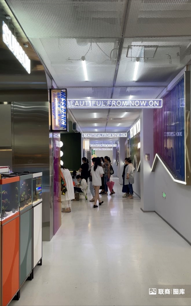 街區(qū)匯集了十余家店鋪,業(yè)態(tài)種類包含小寵活體、寵物食品、用品、餐飲,入駐的品牌包括FUKUFUKU PET、Peidi、YOUQIANG等。寵物用品不但有常見(jiàn)的貓狗用品,還引入了小寵用品,街區(qū)也有小寵館以及水族館,可以近距離接觸寵物。