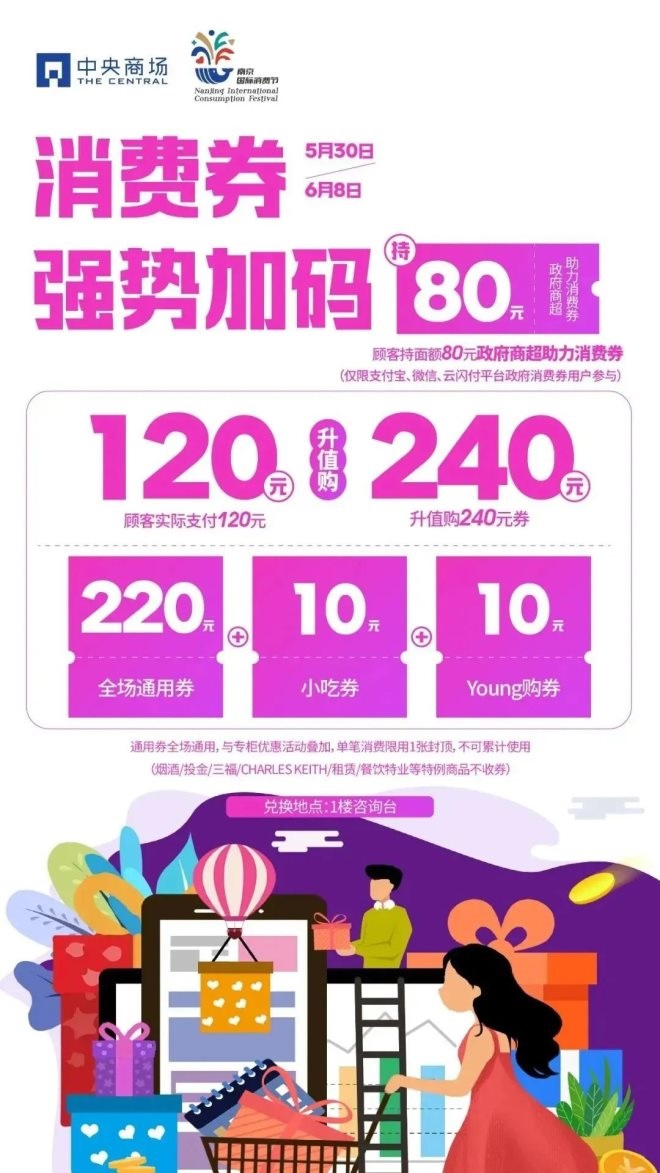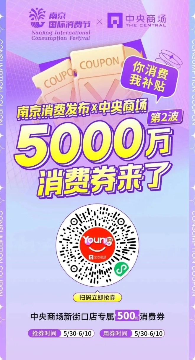 端午節(jié)前夕,中央商場南京三店再次向全體在寧人員和南京都市圈城市市民發(fā)放5000萬消費券!提振消費信心,增加市場活力,聯(lián)動助力大南京!