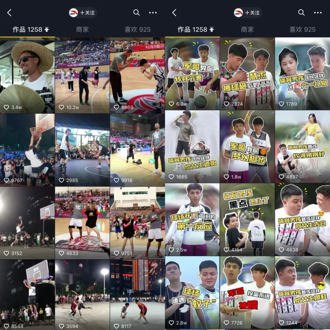 安踏體育抖音官方賬號早期內(nèi)容偏男性喜好
