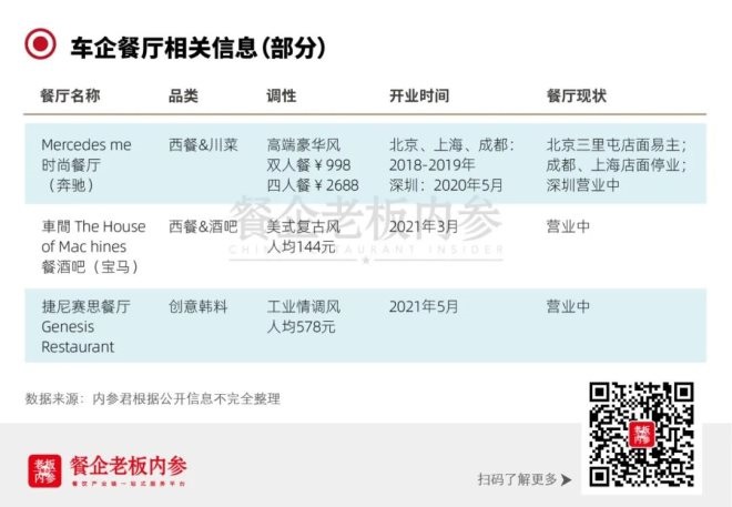 從車企的操作思路中不難看出,其在布局餐廳上往往大刀闊斧,在選址、店面、主廚上大力投入,全然奔著米其林餐廳的水準(zhǔn)前進(jìn)。