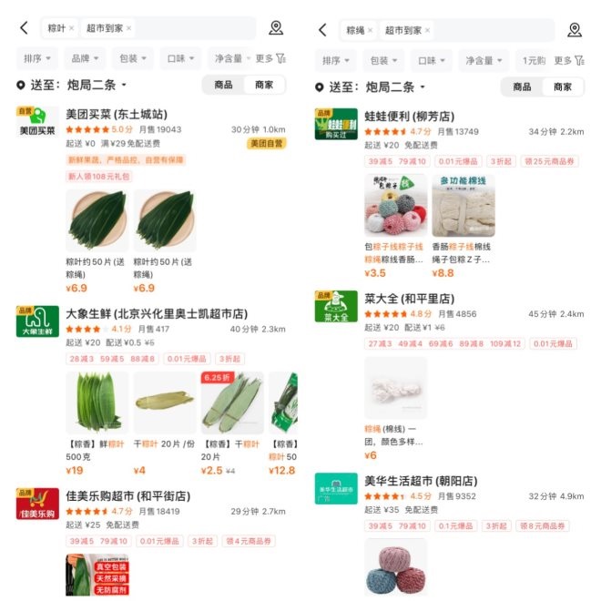 ▲5月16日至5月30日,美團“粽葉”銷量漲7.5倍,“粽繩”銷量漲13.5倍