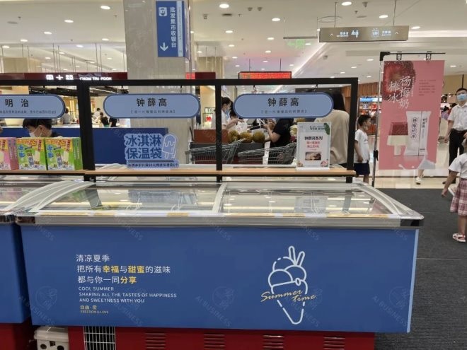 賣場內(nèi)還有多個鎖鮮加冰站,供顧客自助取用,還有免費保溫袋為需求量大和路程較遠的顧客提供商品品質(zhì)和口感的保障。