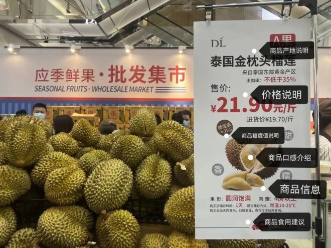 據(jù)悉,“批發(fā)市集”商品毛利極低,“妃子笑荔枝”進貨價為90元/件(一件約10斤),售價則為93元/件,毛利率僅為3%;泰國金枕榴蓮A果進貨價為19.7元/斤,售價為21.9元/斤,毛利率約為10%。