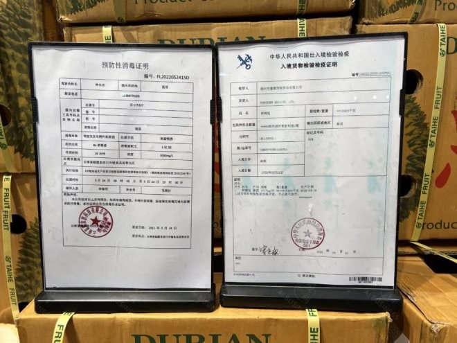 此外,“批發(fā)市集”的商品都有詳盡的說明,包括產(chǎn)地、口感、糖度值、食用建議等,對于進口水果,比如榴蓮,還主動展示了預(yù)防性消毒證明和入境貨物檢疫證明,讓消費者放心購買。