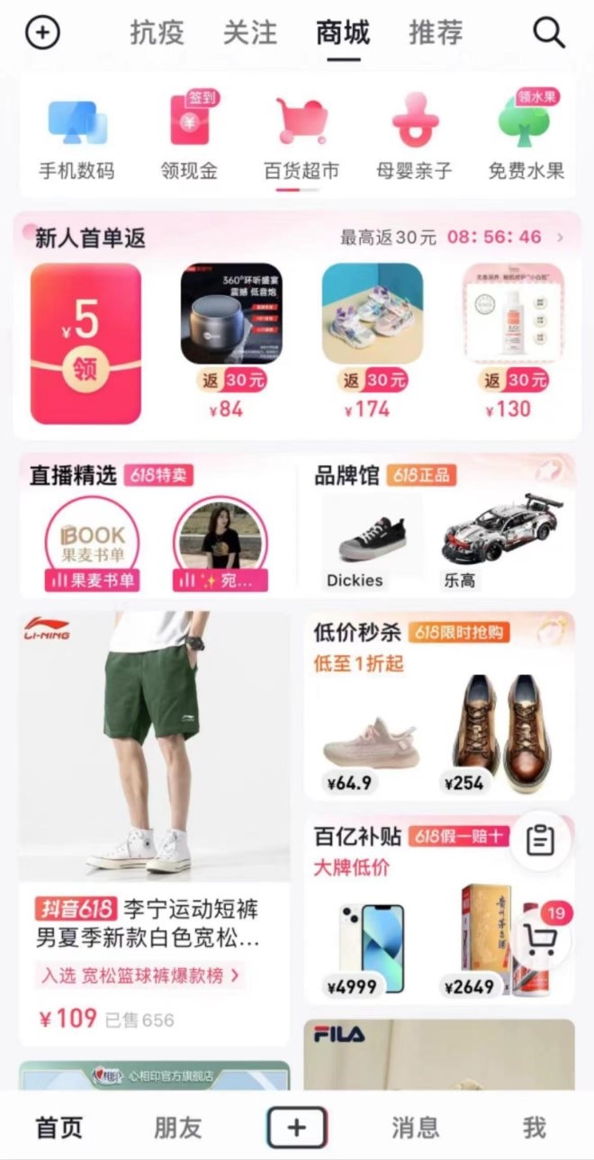 去年八月,抖音將抖音小店升級為抖音商城,新版界面與傳統(tǒng)電商APP類似,并先后推出了百億補貼、拼團、秒殺等活動。不久后,抖音又推出獨立電商APP抖音盒子,與商城分別主攻潮流電商和下沉市場。