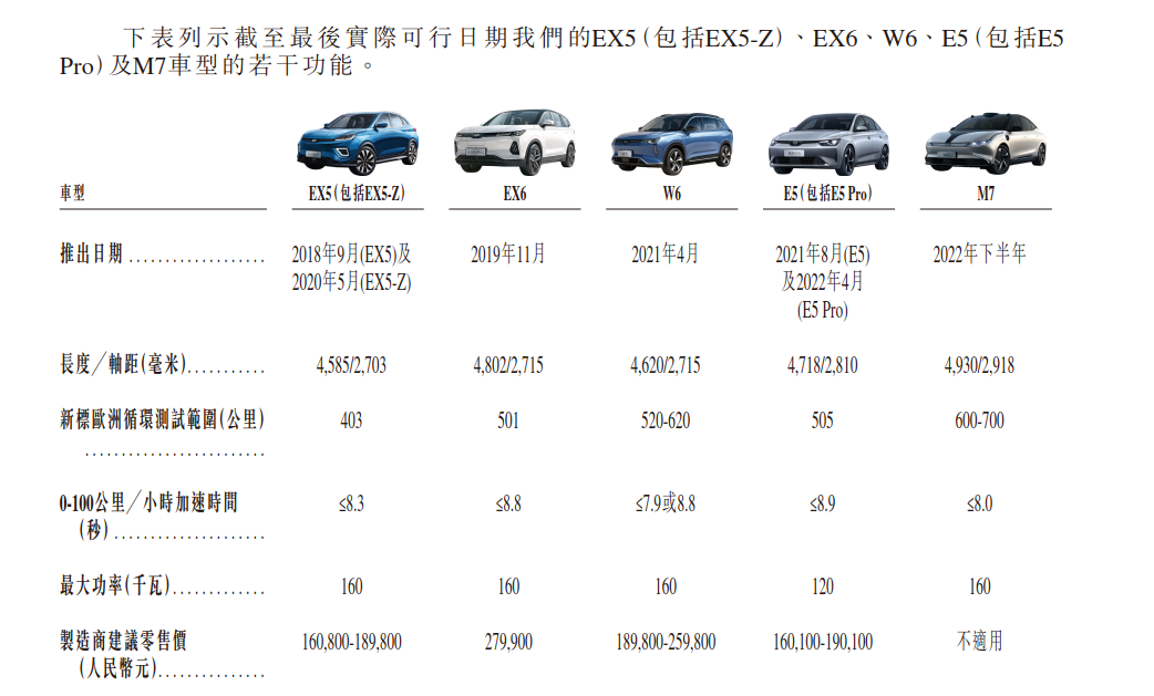 2018年9月,公司推出首款量產(chǎn)車型EX5,后又相繼推出EX6、W6、E5等車型,最新旗艦轎車M7預(yù)計(jì)在今年下半年面世。