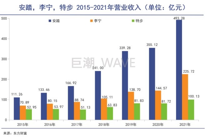 經(jīng)過十余年磨礪,F(xiàn)ILA為安踏集團(tuán)的快速成長立下了汗馬功勞。2021年,安踏總營收達(dá)493.28億元,超越阿迪達(dá)斯中國成為國內(nèi)運動品牌的“二當(dāng)家”,距離耐克510.2億元的營收一步之遙。