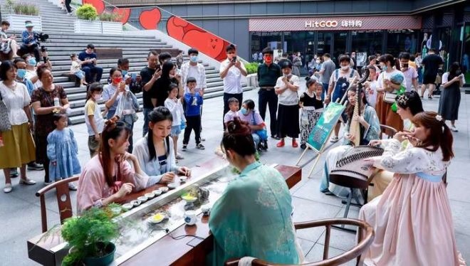 端午當(dāng)天,南湖湖畔的萬家CiTY南湖天地店,身著宋代服裝的小姐姐們翩翩而至,伴隨著古箏竹笛悠揚(yáng)的旋律,手中的酒杯順流而下,古人最浪漫的飲酒場景躍然眼前。宋代漢服巡游、粽子香囊DIY、大師書法表演、古典樂器演奏…一場“曲水流觴”文化之旅為端午增添了濃濃的節(jié)日氣氛。