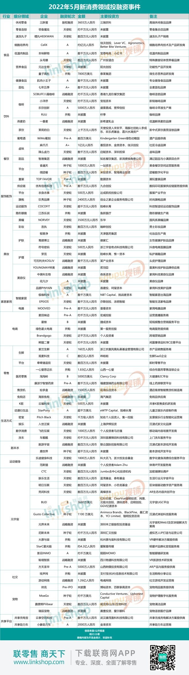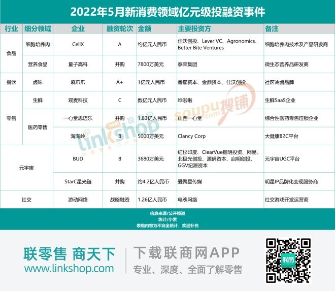 附:2022年5月份新消費品牌融資表