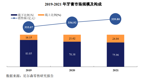 “冷熱酸甜,想吃就吃”——這句膾炙人口的廣告語將“冷酸靈”這個國產(chǎn)牙膏品牌帶進了千家萬戶的視野。作為登康口腔的核心品牌,招股書顯示,2019-2021年,冷酸靈在抗敏感細分領(lǐng)域線下市場分別占60.08%、61.00%和59.61%。根據(jù)尼爾森2021年線下零售統(tǒng)計數(shù)據(jù),冷酸靈牙膏市場零售額份額位居行業(yè)第四、本土品牌第二。冷酸靈牙刷市場零售額份位居行業(yè)第五、本土品牌第三。