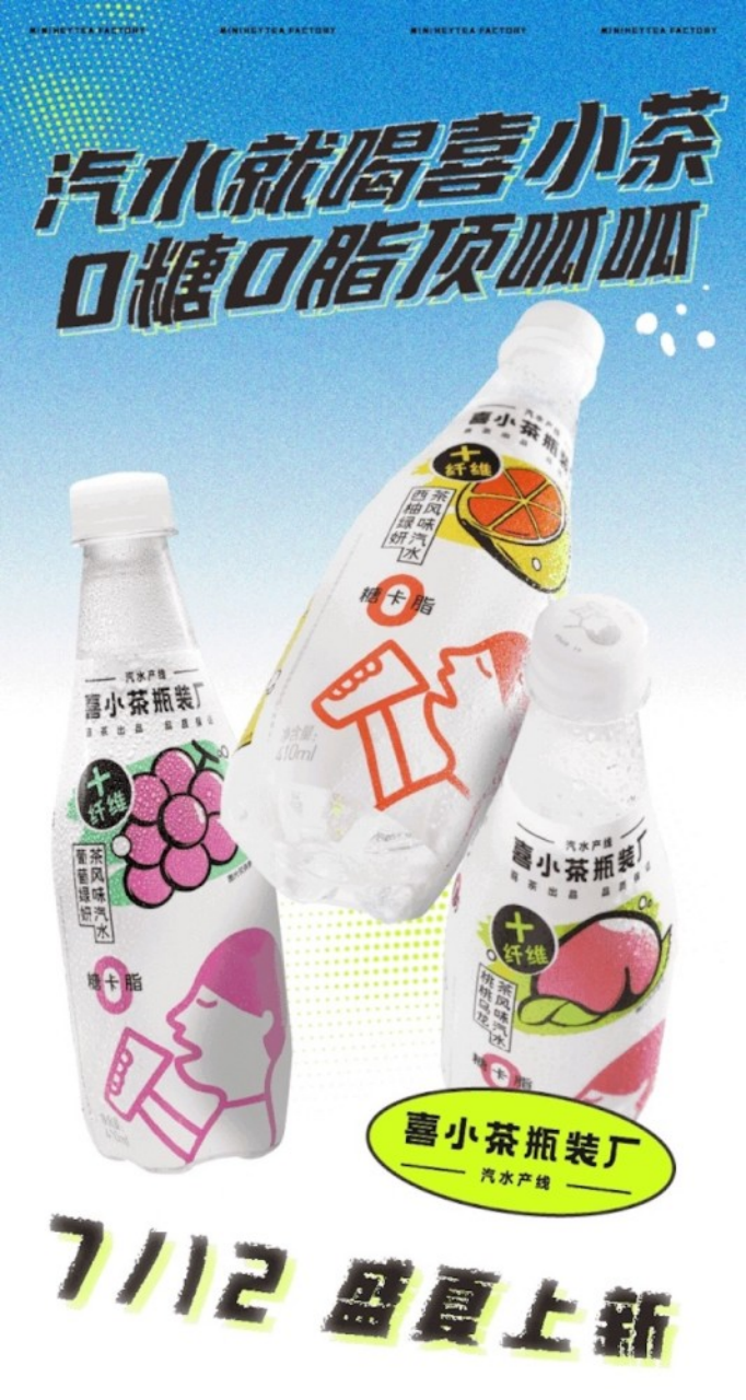 產(chǎn)品端,可口可樂推出了AHA氣泡水,農(nóng)夫山泉也推出蘇打氣泡水,不僅是巨頭們開始進(jìn)攻氣泡水市場,就連新茶飲品牌也紛紛進(jìn)軍瓶裝飲料市場,喜茶推出的氣泡水系列也跟隨元氣森林的概念,同樣號稱“0糖0脂”。