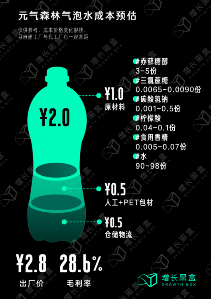 相較于可口可樂的60%以上高毛利、康師傅35%左右的毛利,元氣森林不到28.6%的毛利率其實不算高,用這樣激進(jìn)的犧牲成本、以流血換渠道的戰(zhàn)略,實則并非長久之計。