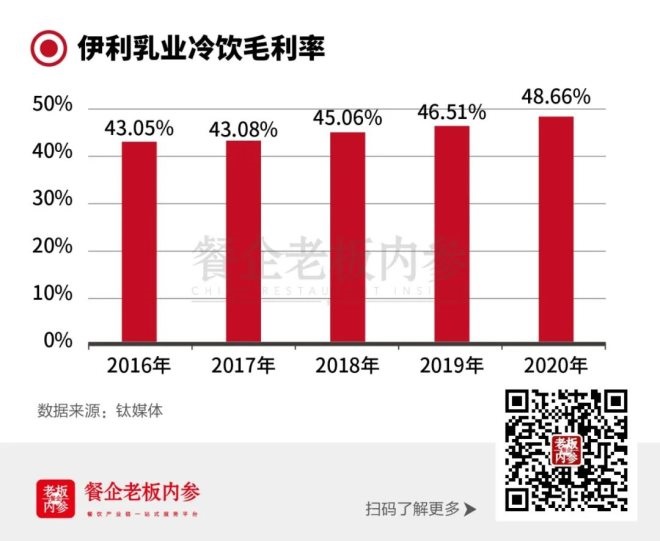 以伊利乳業(yè)、三元股份(八喜母公司)為例,據(jù)鈦媒體統(tǒng)計,2016-2021年,三元股份冰淇淋業(yè)務(wù)的毛利率基本維持在30%以上的水平。2016-2021年,伊利乳業(yè)冷飲業(yè)務(wù)毛利率持續(xù)在40%以上。其中,疫情出現(xiàn)的2020年,伊利乳業(yè)冷飲業(yè)務(wù)毛利率達(dá)到48.66%,創(chuàng)下2016年以來最高水平。