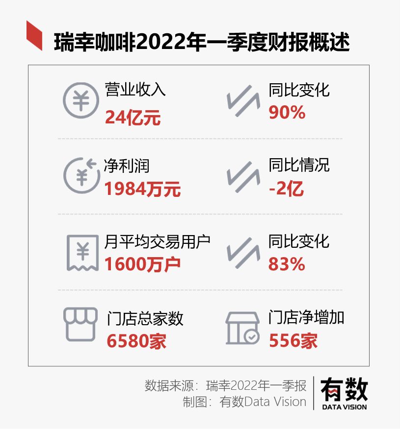 今年一季度,瑞幸發(fā)布最新一季度財(cái)報(bào),營收24.04億元,同比(較上年同期)增長89.5%;凈利潤為1980萬元,首次實(shí)現(xiàn)全面盈利。