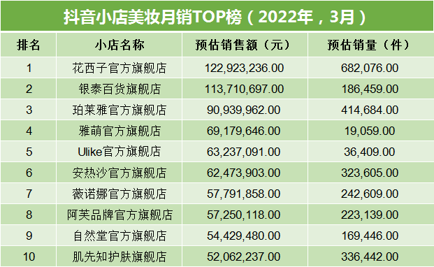 飛瓜數(shù)據(jù)顯示,珀萊雅、歐詩漫、薇諾娜等國貨品牌連續(xù)多月位居抖音小店銷售額前10位置。