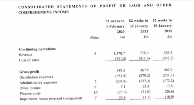 其2021年財報顯示,公司銷售額因在2021年閉店數(shù)月而銳減,虧損金額達(dá)到1.5億英鎊。