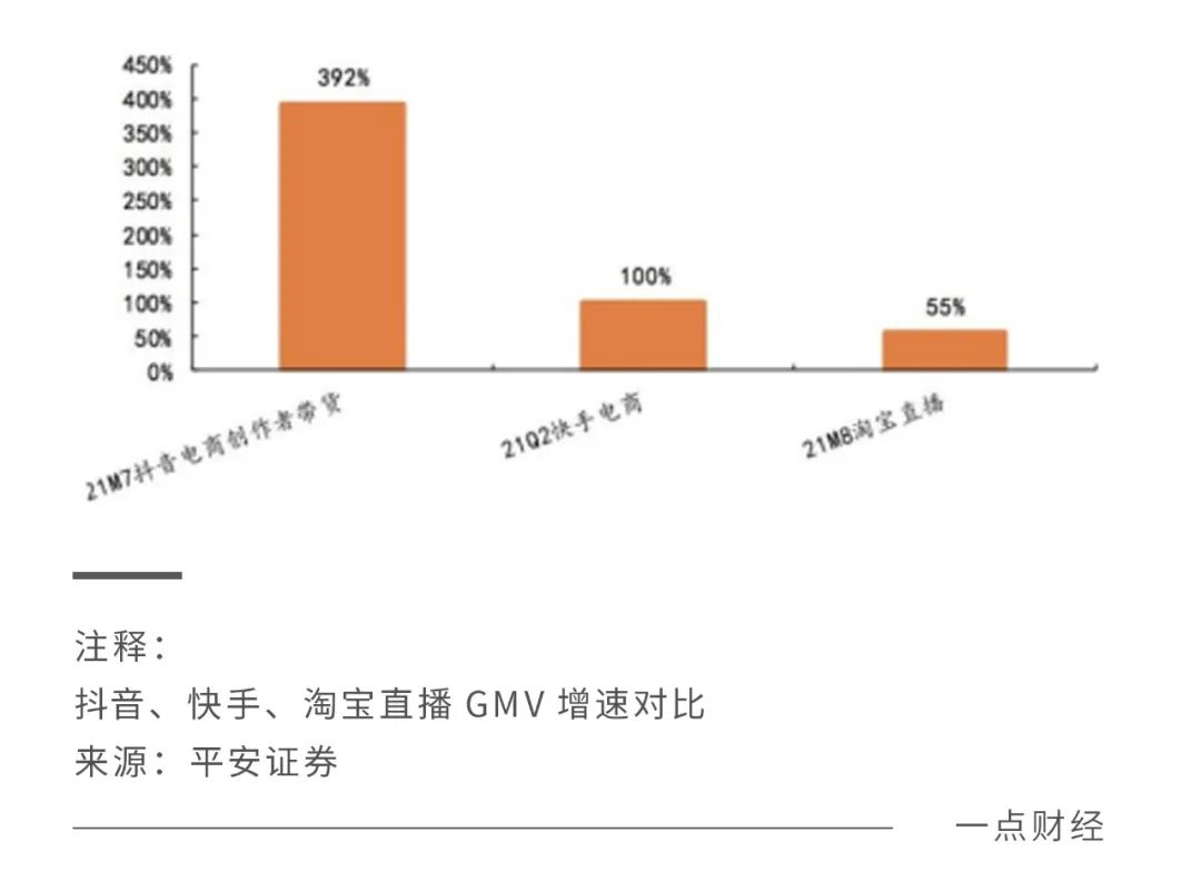 平安證券報告指出,2021年7月抖音的GMV增速為392%,快手Q2為100%,淘寶8月為55%。幾乎同一時間段內(nèi),淘寶直播GMV增速最慢,新增流量不足是重要原因之一。