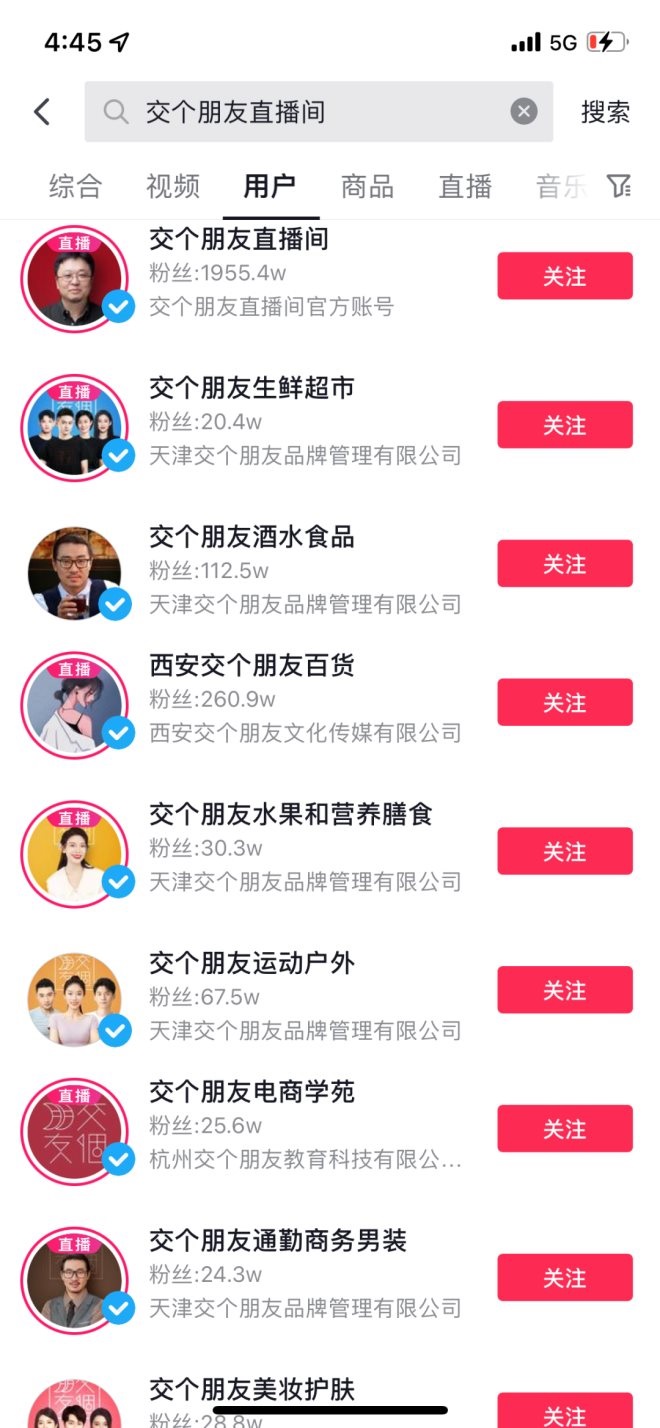 ▍截自抖音,“交個朋友”搭建的直播賬號矩陣