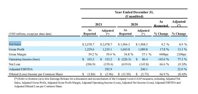 根據(jù)露華濃歷年財(cái)報(bào)顯示,2019~2021年3年間,公司凈銷售分別為161.04億元、126.75億元、138.35億元;同時(shí)期凈虧損分別為10.5億元、41.19億元和13.77億元。