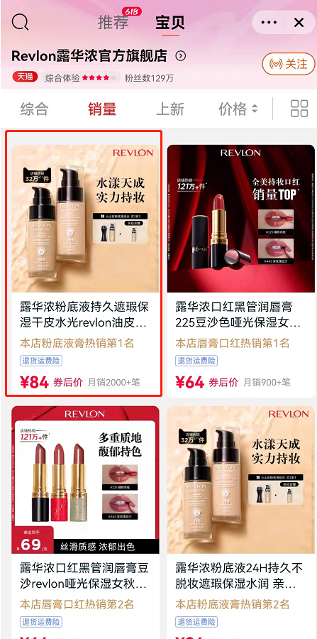 ▍截自露華濃天貓旗艦店(6月13日19時(shí)截圖)