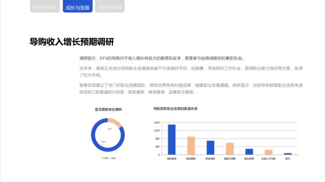 數(shù)據(jù)顯示,全國(guó)已有2000萬名百貨、商超導(dǎo)購(gòu)從業(yè)者,他們的收入水平參差不齊,但普遍對(duì)收入增長(zhǎng)和獲得職業(yè)提升抱有進(jìn)一步預(yù)期。
