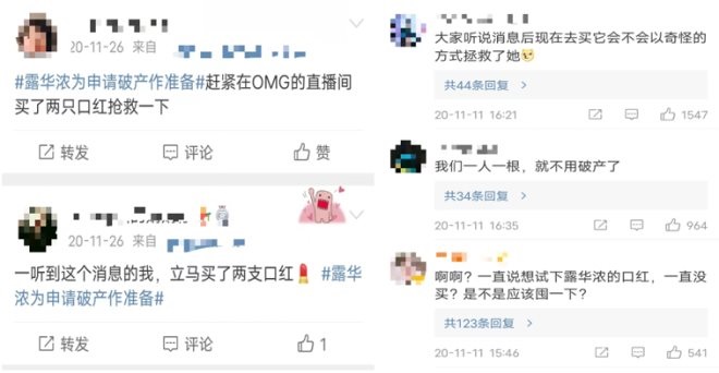 當時戲劇性的一幕發(fā)生了:破產(chǎn)消息當天就登上了熱搜,微博上相關(guān)話題閱讀破億。因擔心露華濃破產(chǎn)后再也買不到這個品牌,中國消費者涌入露華濃官方旗艦店,將產(chǎn)品搶購一空。幾年來費盡心思都沒能吸引消費者的露華濃,沒想到因為破產(chǎn)新聞小賺了一筆。