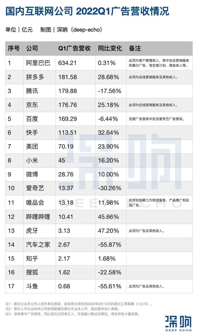 翻看這個(gè)2022年Q1財(cái)報(bào)季的各家數(shù)據(jù):阿里巴巴以634.21億元的廣告收入穩(wěn)居領(lǐng)先地位。百度、騰訊兩家廣告收入則分別為169.29億元、179.88億元。