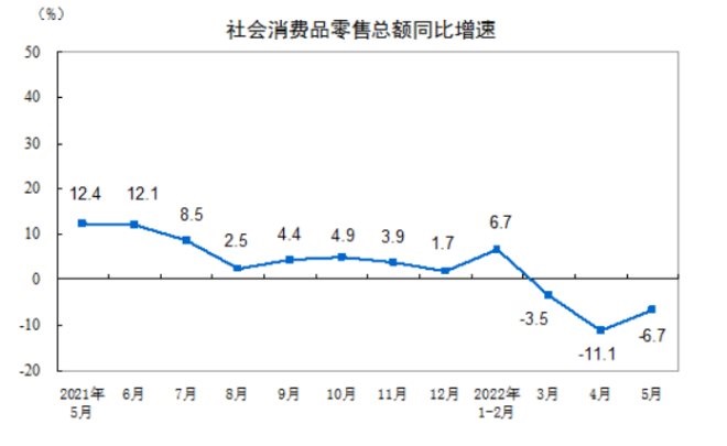 聯(lián)商快訊:6月15日,國(guó)家統(tǒng)計(jì)局公布數(shù)據(jù)顯示,5月份,社會(huì)消費(fèi)品零售總額33547億元,同比下降6.7%。其中,除汽車(chē)以外的消費(fèi)品零售額30361億元,下降5.6%。1-5月份,社會(huì)消費(fèi)品零售總額171689億元,同比下降1.5%。其中,除汽車(chē)以外的消費(fèi)品零售額155095億元,下降0.5%。