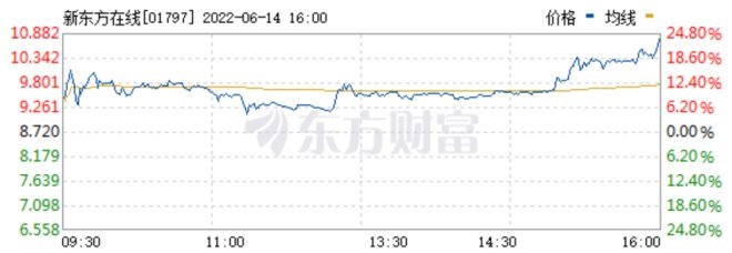 一場(chǎng)直播,銷(xiāo)售額超過(guò)1500萬(wàn)元;一個(gè)周末,從抖音帶貨榜第156名一度升至第2名;3天不到,直播間漲粉超過(guò)200萬(wàn)......這一個(gè)個(gè)亮眼的數(shù)據(jù),均來(lái)源于新東方旗下的“東方甄選”,而直播間的紅紅火火也帶動(dòng)了新東方股票的飆紅。6月10日,新東方在線漲近40%;6月13日,港股新東方在線(10.6, 1.88, 21.56%)的股價(jià)更是一路高漲。連續(xù)兩個(gè)交易日累計(jì)漲幅超過(guò)95%。而直播中的精彩部分剪輯,更是通過(guò)視頻平臺(tái)二次發(fā)酵,使得熱度居高不下。
