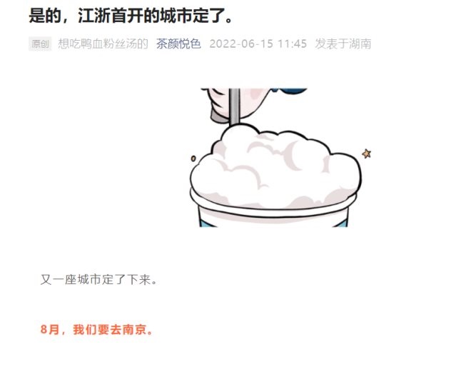 聯(lián)商快訊:6月15日,茶顏悅色官宣將進(jìn)軍華東市場,江浙首店落子南京。