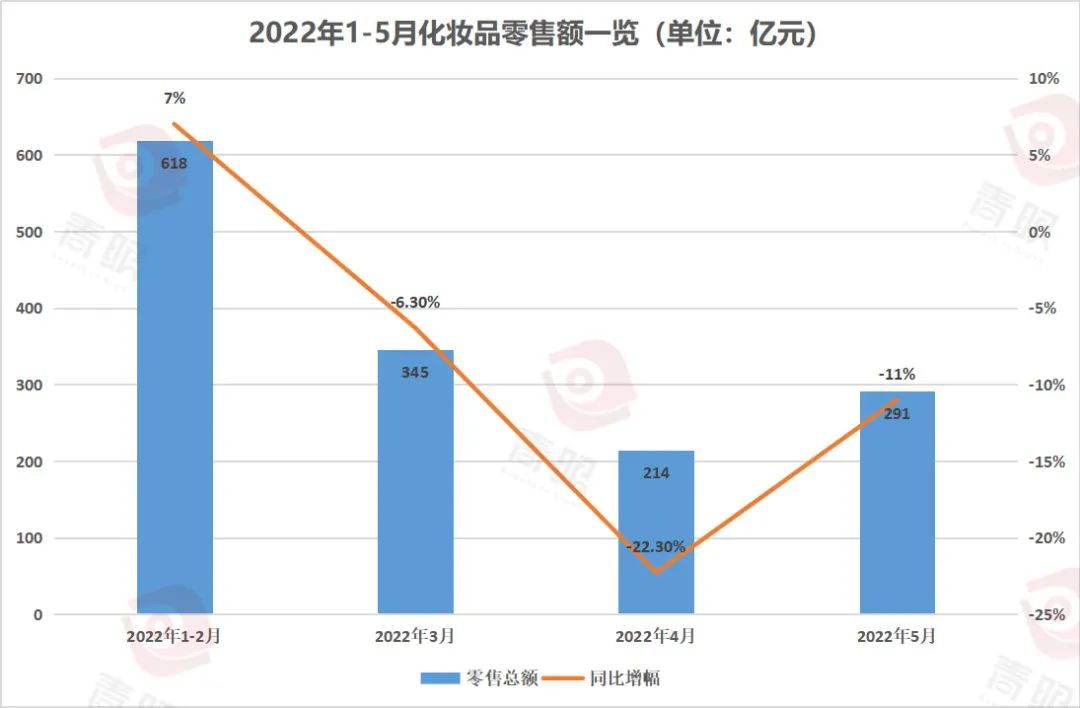 另外,近十年來(lái),1-5月化妝品零售總額也僅在2020年和今年出現(xiàn)了下降,這兩個(gè)年份的跌幅分別為4.9%和5.2%。值得一提的是,去年1-5月化妝品零售總額一度高達(dá)1538.7億元,同比增長(zhǎng)高達(dá)30.3%,金額和增幅均創(chuàng)下歷史最高。