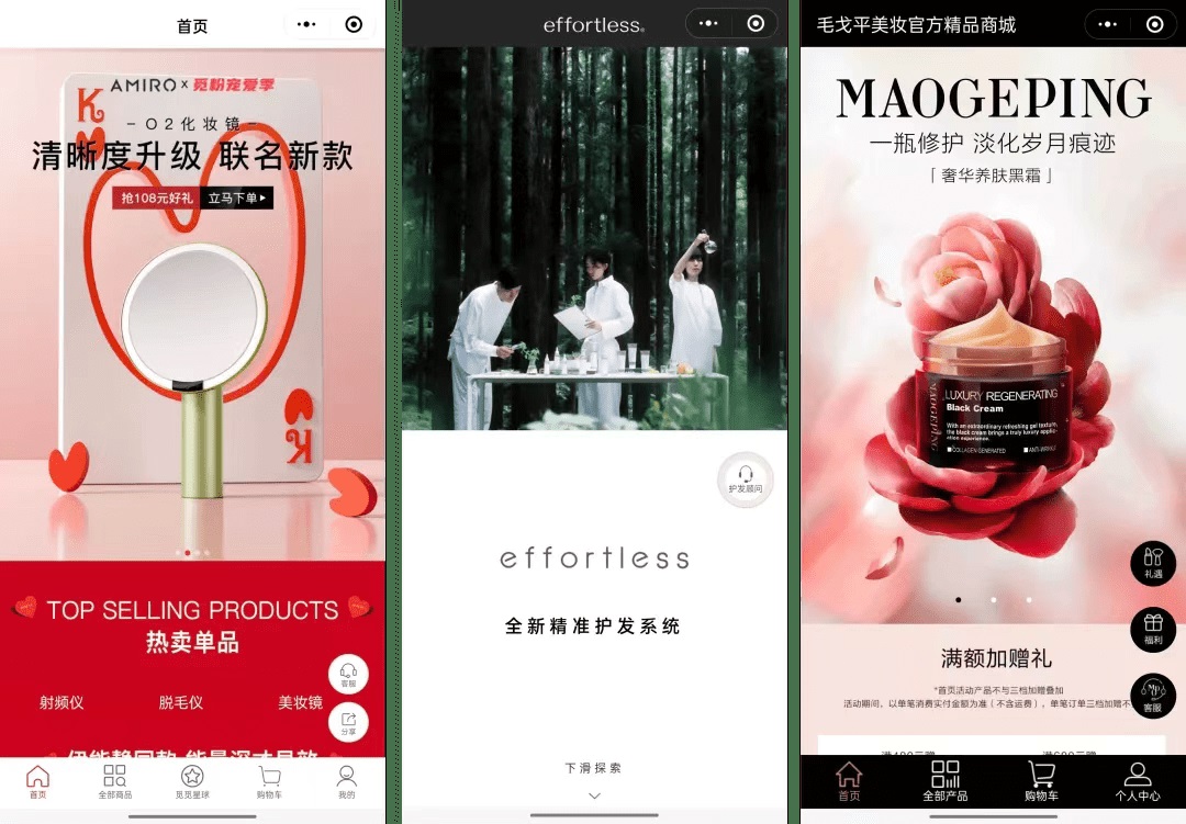 與此同時,在商品力方面,絲芙蘭以大牌小眾美妝尖貨和獨家發(fā)售的選品策略、回饋消費者小程序?qū)O淼莫毤沂装l(fā)活動、美妝類KOL小程序直播專場等,培養(yǎng)用戶心智并積極促進(jìn)銷售轉(zhuǎn)化。在產(chǎn)品力的維度上,絲芙蘭在微信小程序整合了線上商城、會員中心、店鋪服務(wù)預(yù)約等一系列功能,并通過公眾號廣告和朋友圈LBS(Location Based Services,地理定位與人群定向)技術(shù),進(jìn)行精準(zhǔn)的廣告投放,依靠“廣告引流—引導(dǎo)關(guān)注公眾號—小程序—引導(dǎo)添加美妝顧問企業(yè)微信—進(jìn)群”的路徑,完成公域反哺私域。