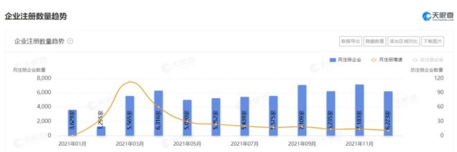 天眼查數(shù)據(jù)顯示,2021年全年,火鍋相關(guān)企業(yè)數(shù)量新增6.3萬多家,而2022年上半年(1月1日-至6月1日)全國范圍內(nèi)新增相關(guān)企業(yè)數(shù)量超2萬余家,較2021年相比,同比增長為-7.9%,有所減少。