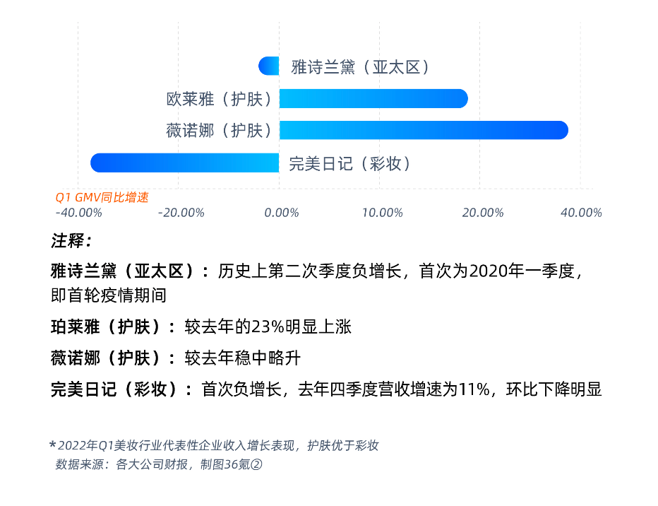 從幾家公司的一季度財(cái)報(bào)也能看出這個(gè)趨勢(shì),部分護(hù)膚品還有上漲,但彩妝卻跌得很慘。