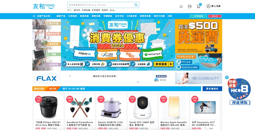 從推進(jìn)“平臺(tái)”的搭建,到對(duì)商戶進(jìn)行傭金減免,這一系列的舉措,都可以看到香港電商平臺(tái)對(duì)阿里、京東成功路徑的借鑒。甚至在“大促節(jié)點(diǎn)”的設(shè)置上,同樣有諸多參考。比如“友和”從2014年開始,即跟進(jìn)了“雙11”,目前還有“雙12”、“818VIP節(jié)”等。當(dāng)然,也有其基于自身特色的“313周年慶”。