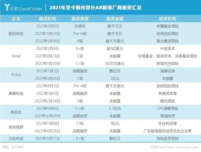值得一提的是,這些公司最近兩年都得了資本的強力輸血,由投資線索順藤摸瓜,可以看到阿里巴巴、騰訊等互聯(lián)網巨頭也已經通過另一種方式入場,為其日后拓展AR生態(tài)做好準備。