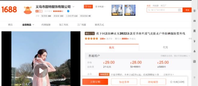 圖 / 1688平臺上,有企業(yè)售賣蕉下同款防曬衣