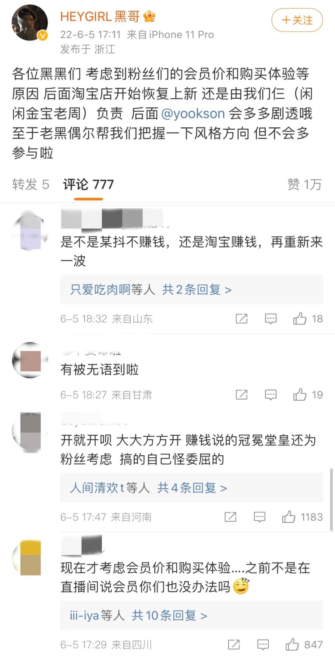 4月7日,淘寶女裝類目的網(wǎng)紅商家“HEYGIRL黑哥”在微博發(fā)文,決定暫停淘寶店上新,轉(zhuǎn)戰(zhàn)抖音直播不久后,6月5日又官宣淘寶店后續(xù)恢復(fù)上新,網(wǎng)友紛紛猜測(cè)是因?yàn)槎兑舻氖找娌患疤詫殻軌蚩闯鲛D(zhuǎn)型其實(shí)不易。